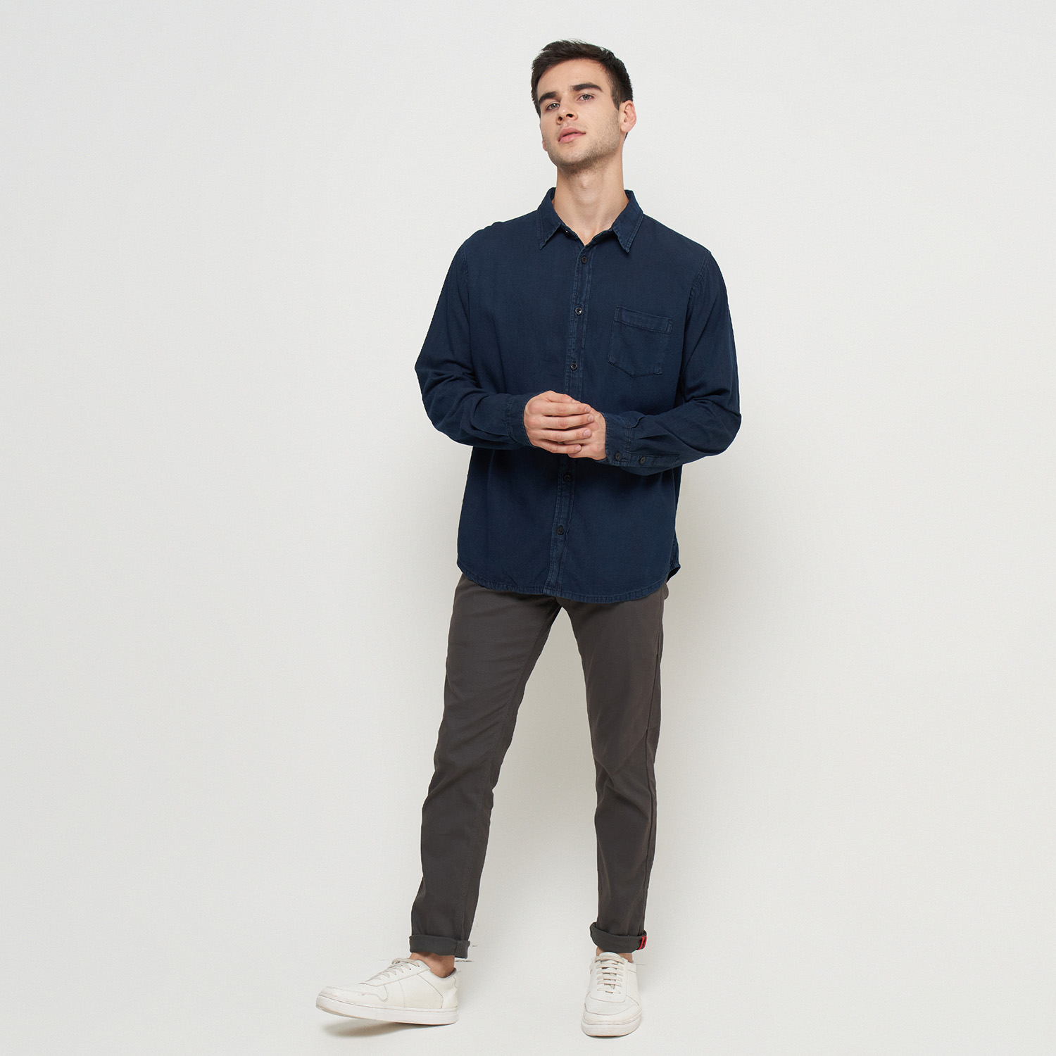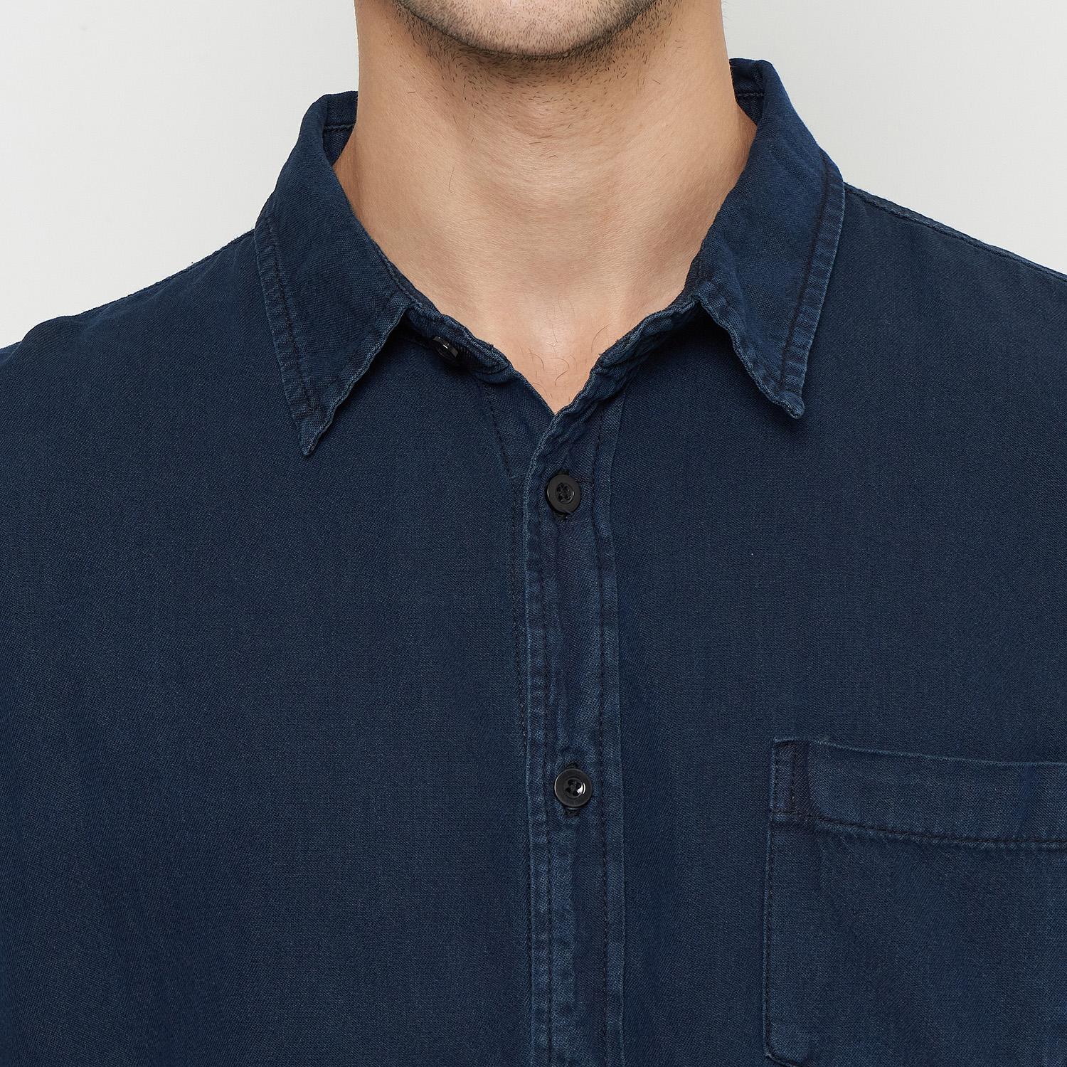 Kemeja Denim Panjang Pria Biru Tua