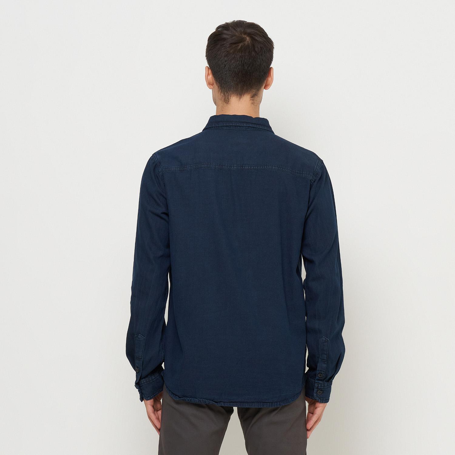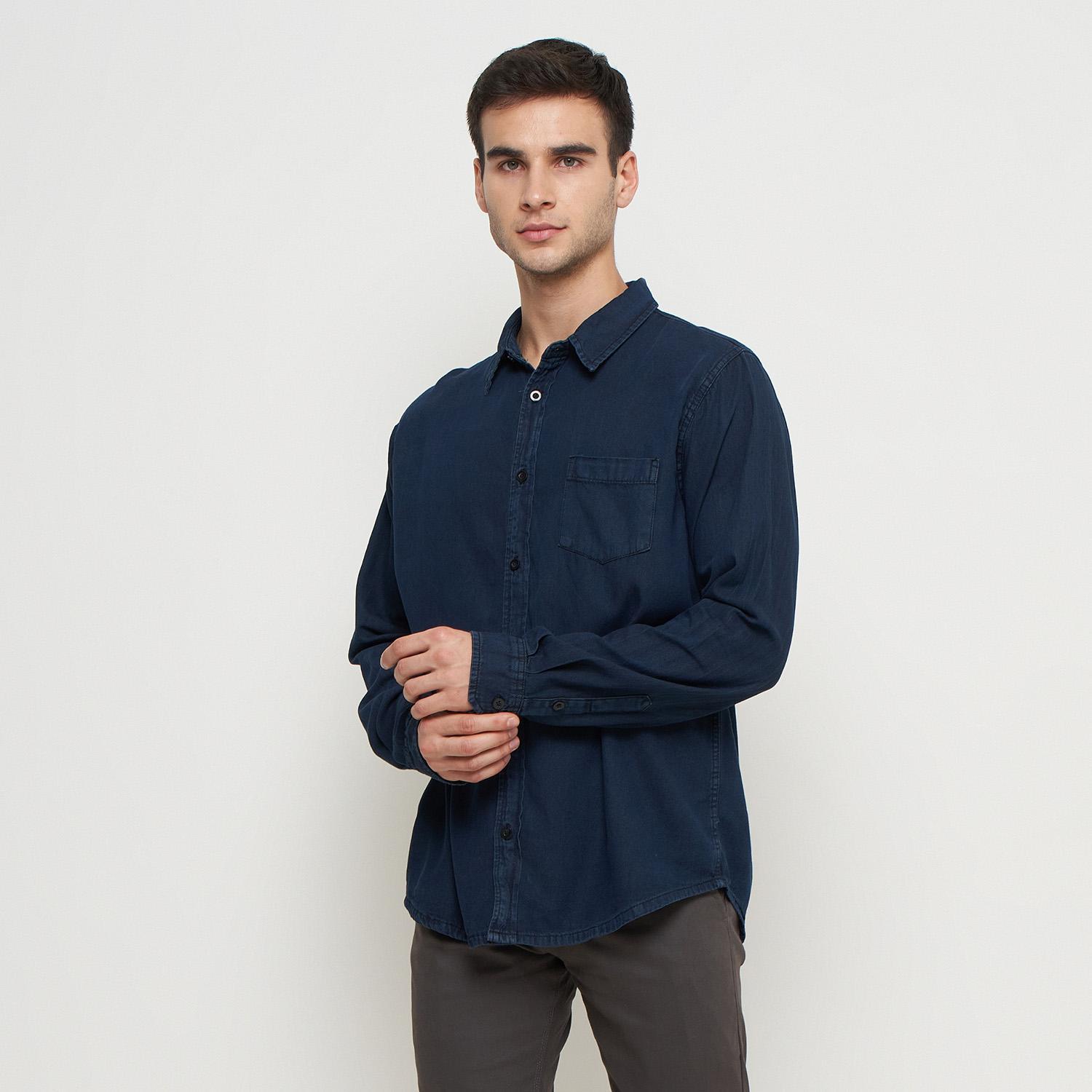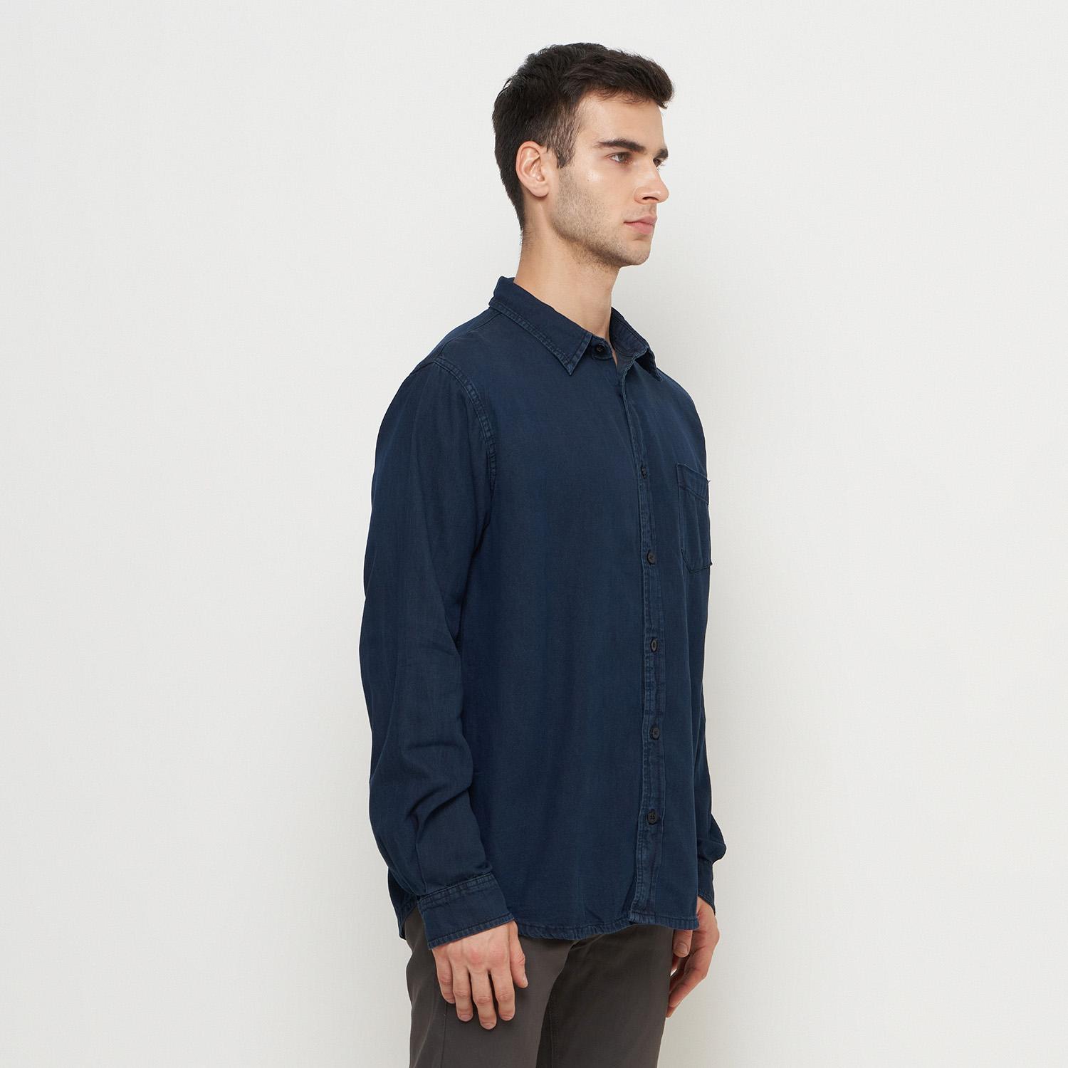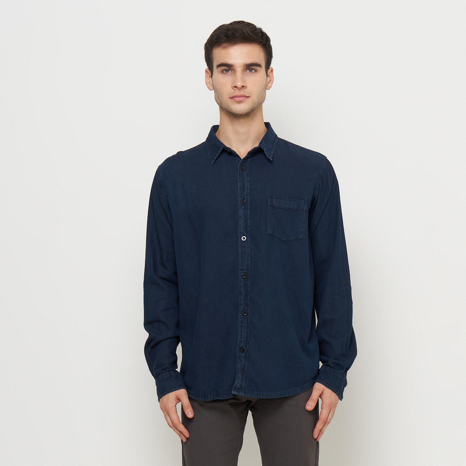 Kemeja Denim Panjang Pria Biru Tua Emoline