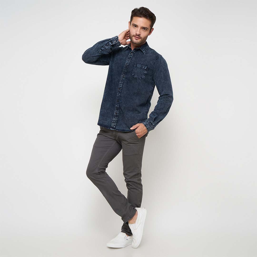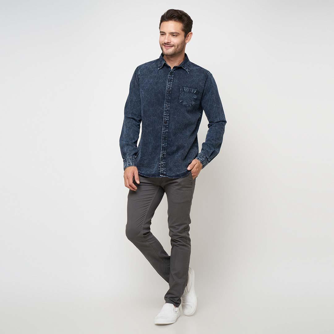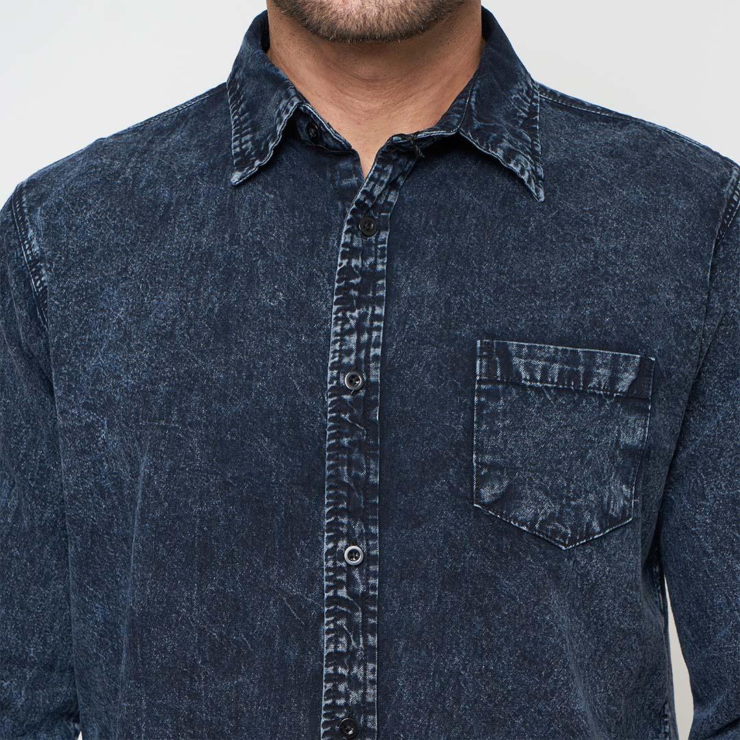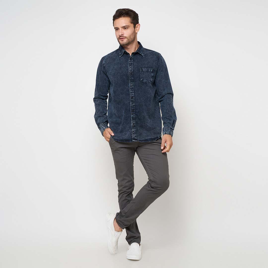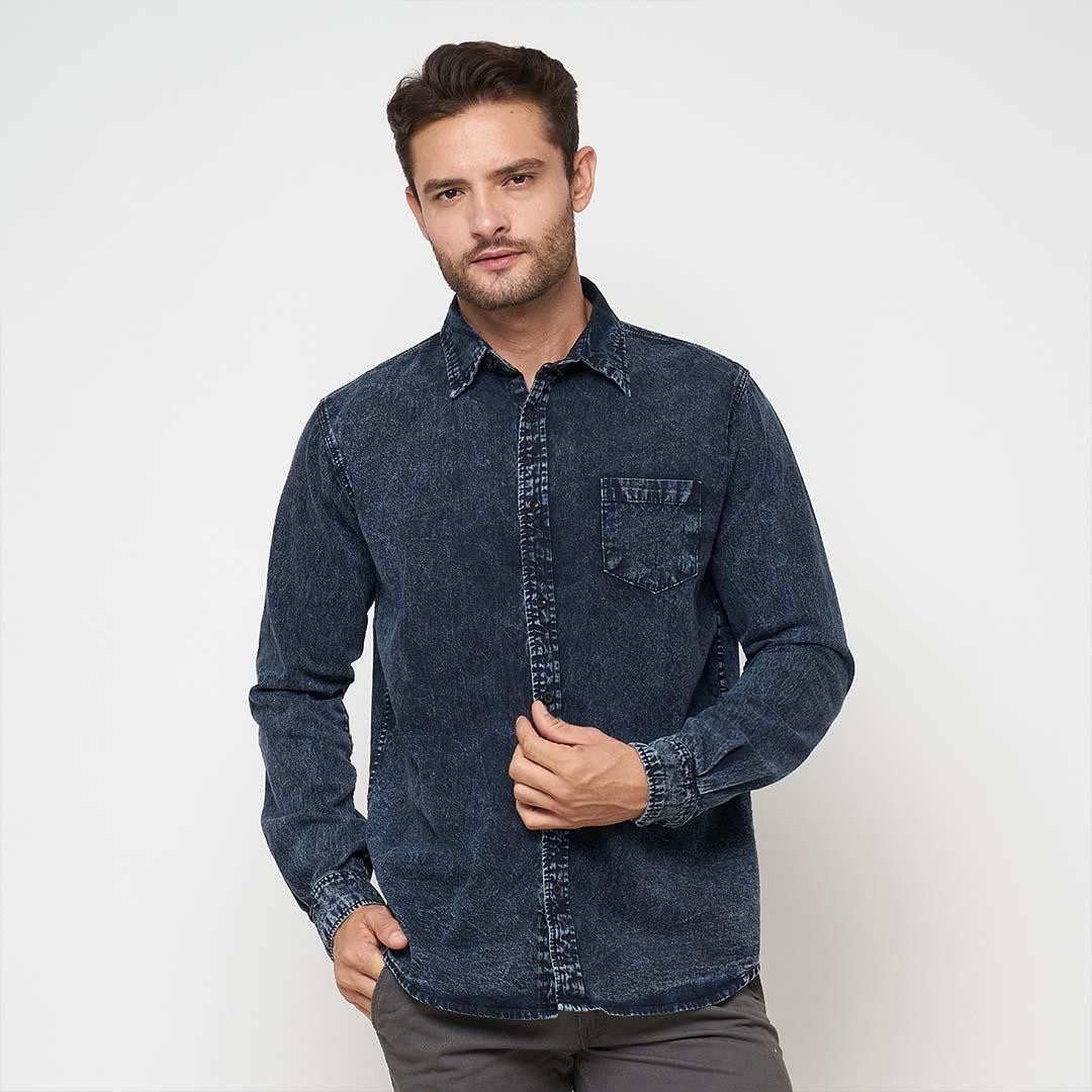 Emoline Long Denim Shirt Black Sandwash – Kemeja Denim Panjang Pria – Sandwash Hitam