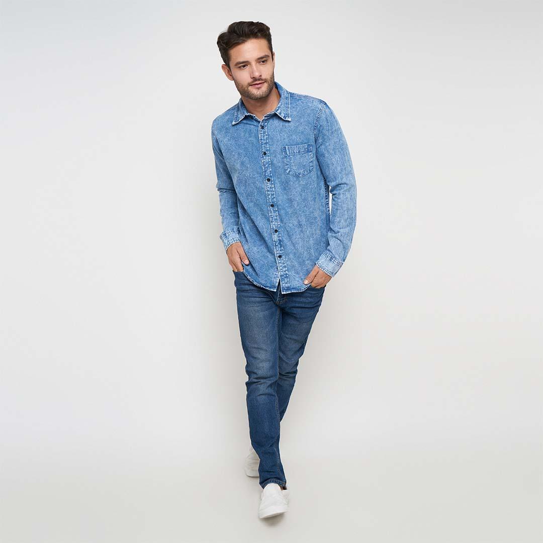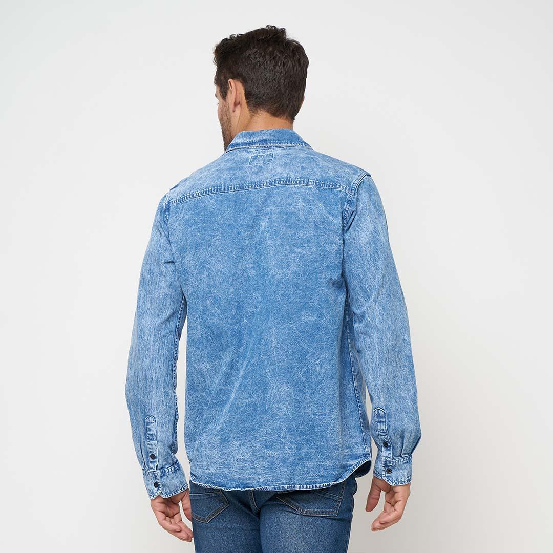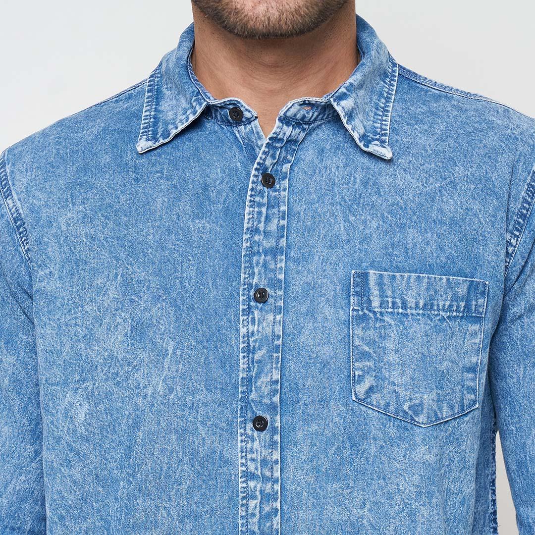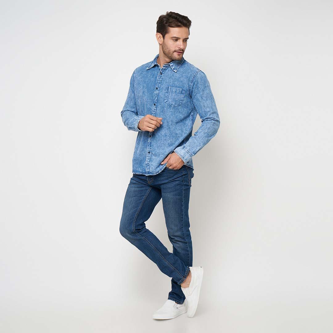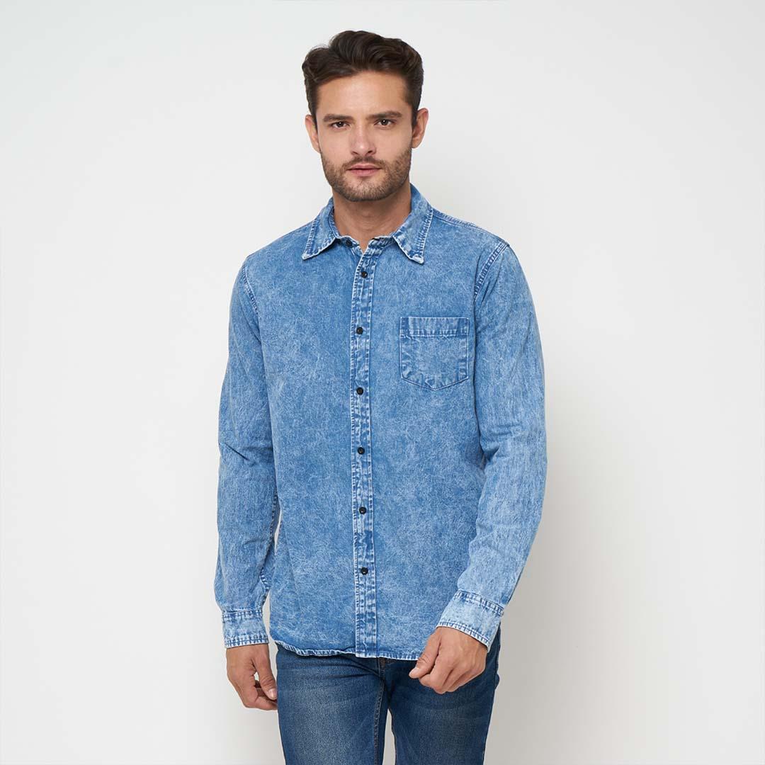 Emoline Long Denim Shirt Sandwash Blue – Kemeja Denim Panjang Pria – Sandwash Biru