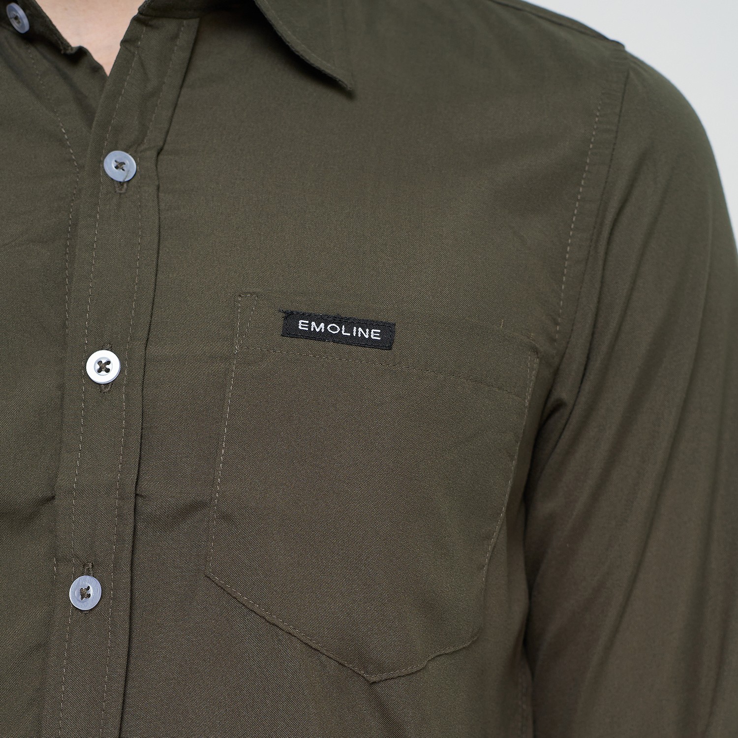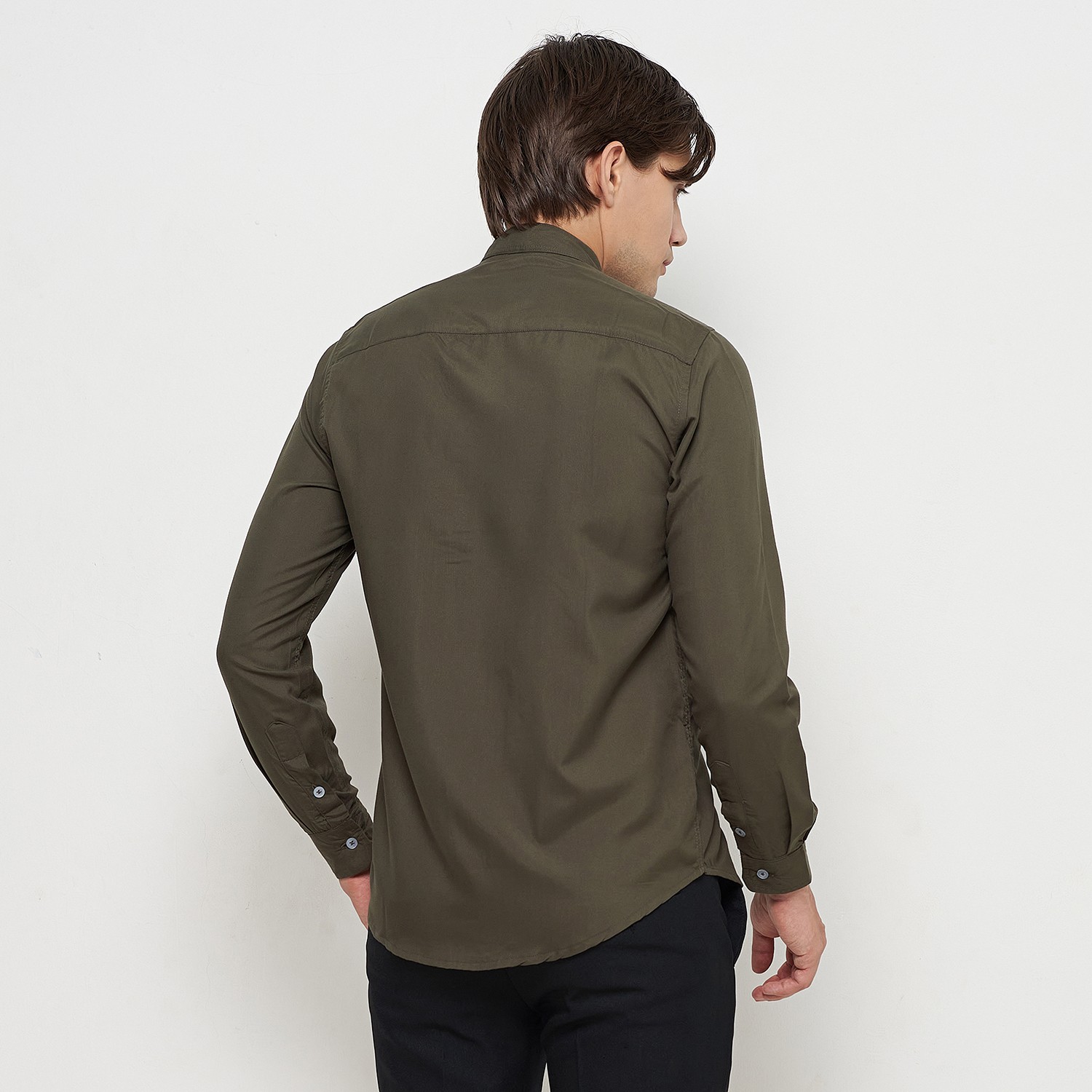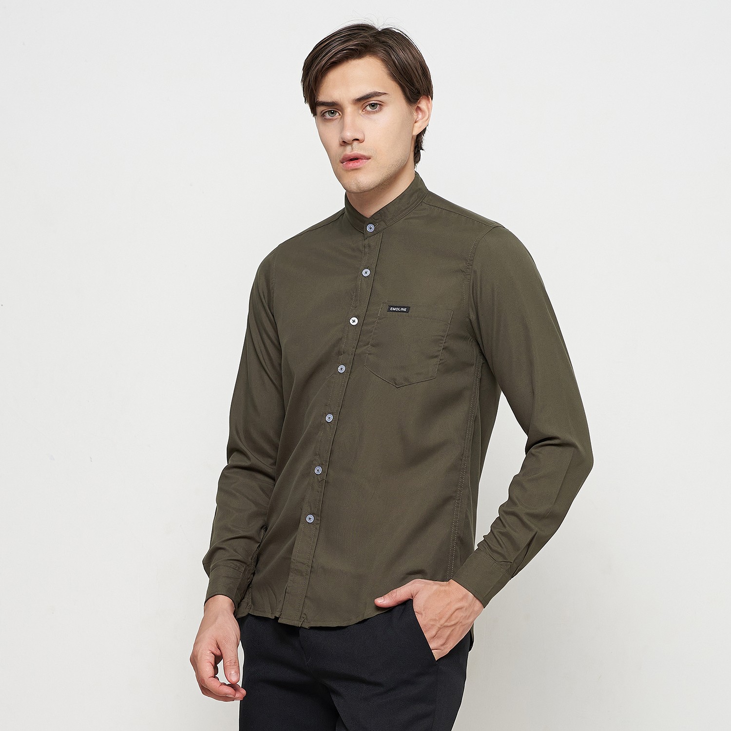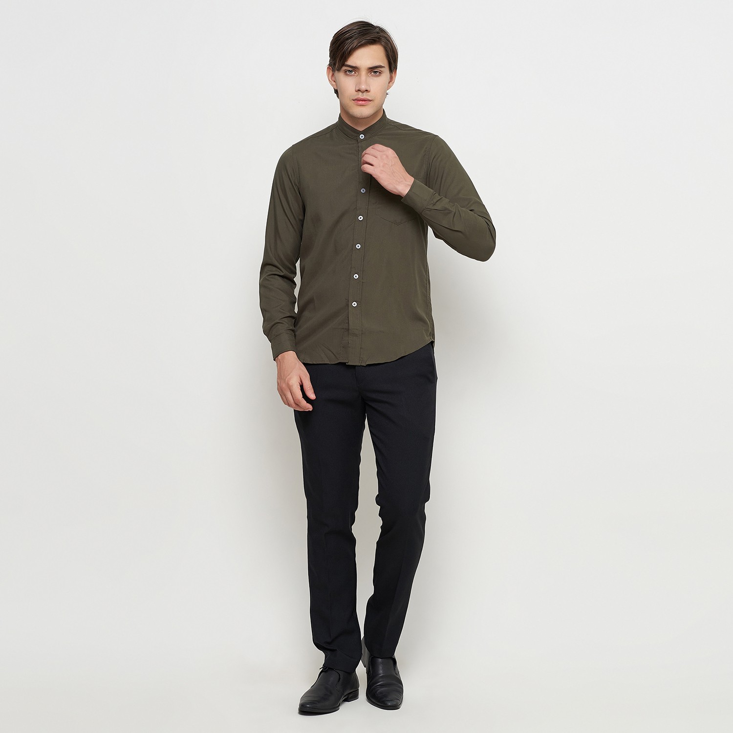 Kemeja Pria Basic Polos Panjang Hijau Army
