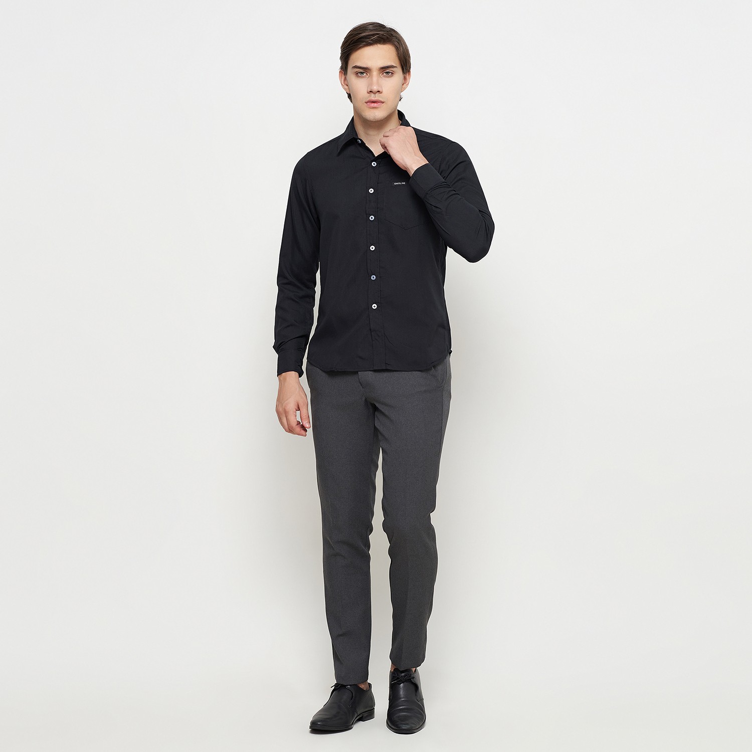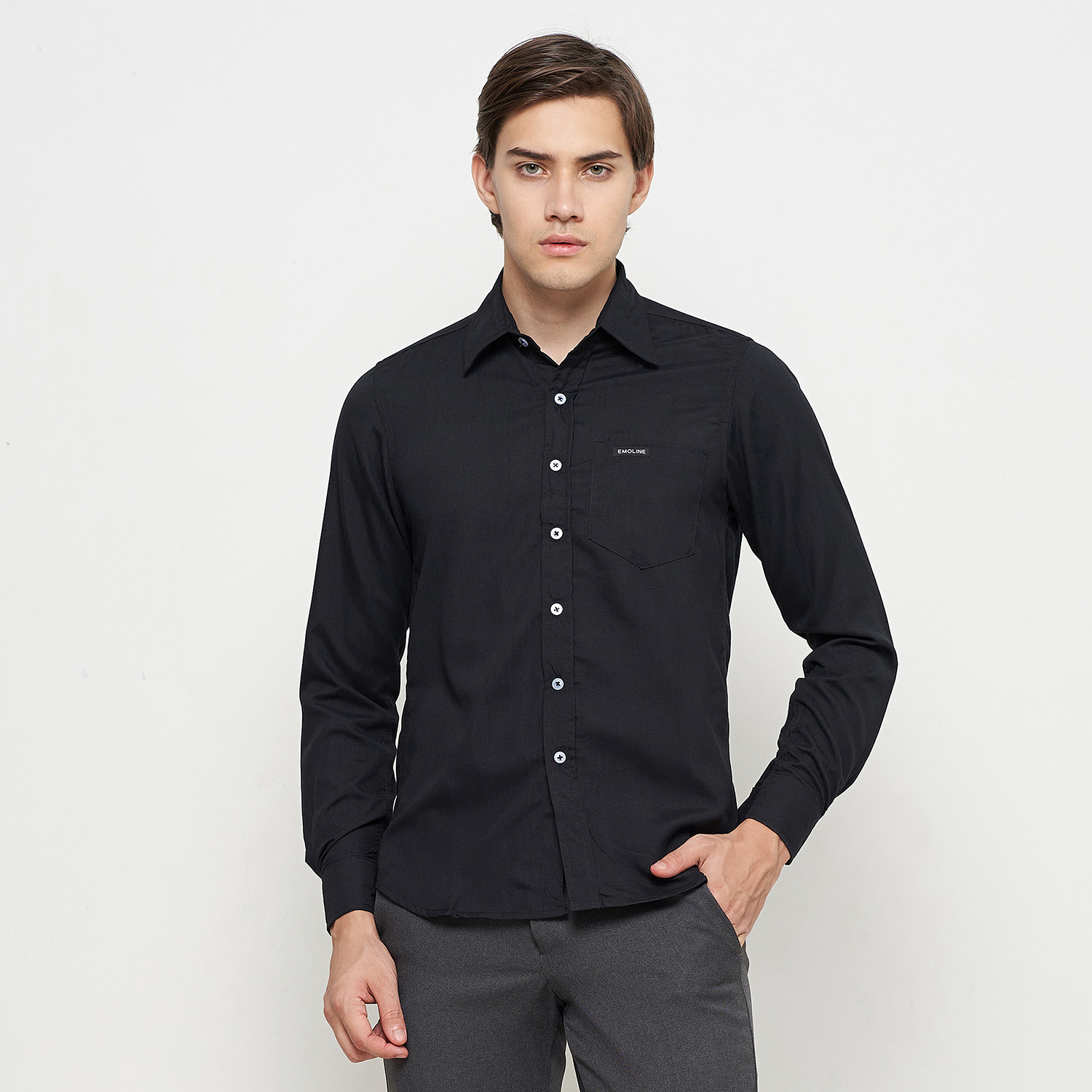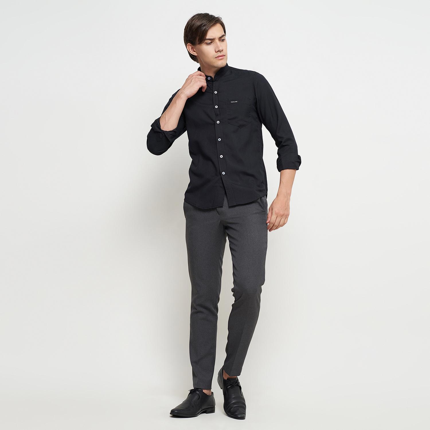 Kemeja Pria Basic Polos Panjang Hitam